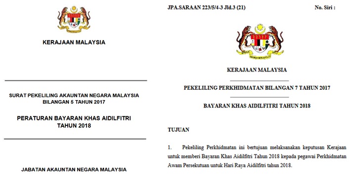 Pekeliling Perkhidmatan Bilangan 6 Tahun 2017 Bayaran Khas Tahun 2017: