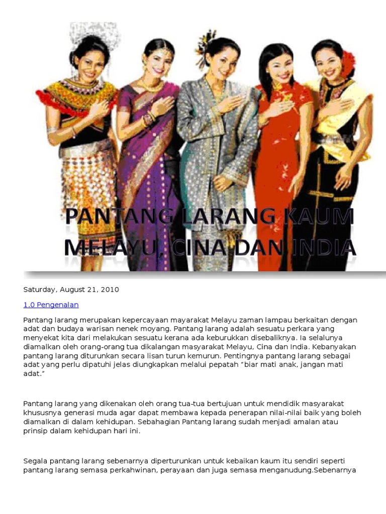 Anak dara tidak boleh menyanyi di dapur, nanti dapat suami tua. 4.1 pantang larang semasa pekahwinan orang india perkahwinan kaum india di malaysia diklasifikasikan kepada beberapa jenis iaitu tamil tirumanam ,eliyat tirumanam dan vaitiikat. Malah, ada beberapa pantang larang semasa mengandung yang telah dibuktikan oleh kajian sains.